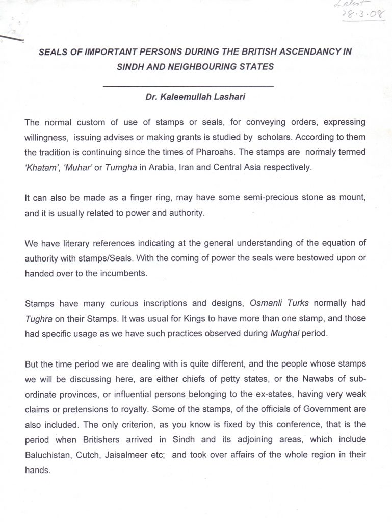 Seals of importance person during the british Ascendency in Sindh and Neighbouring Sindh September 17, 2025 Seals of importance person during the british Ascendency in Sindh and Neighbouring Sindh Read Post »